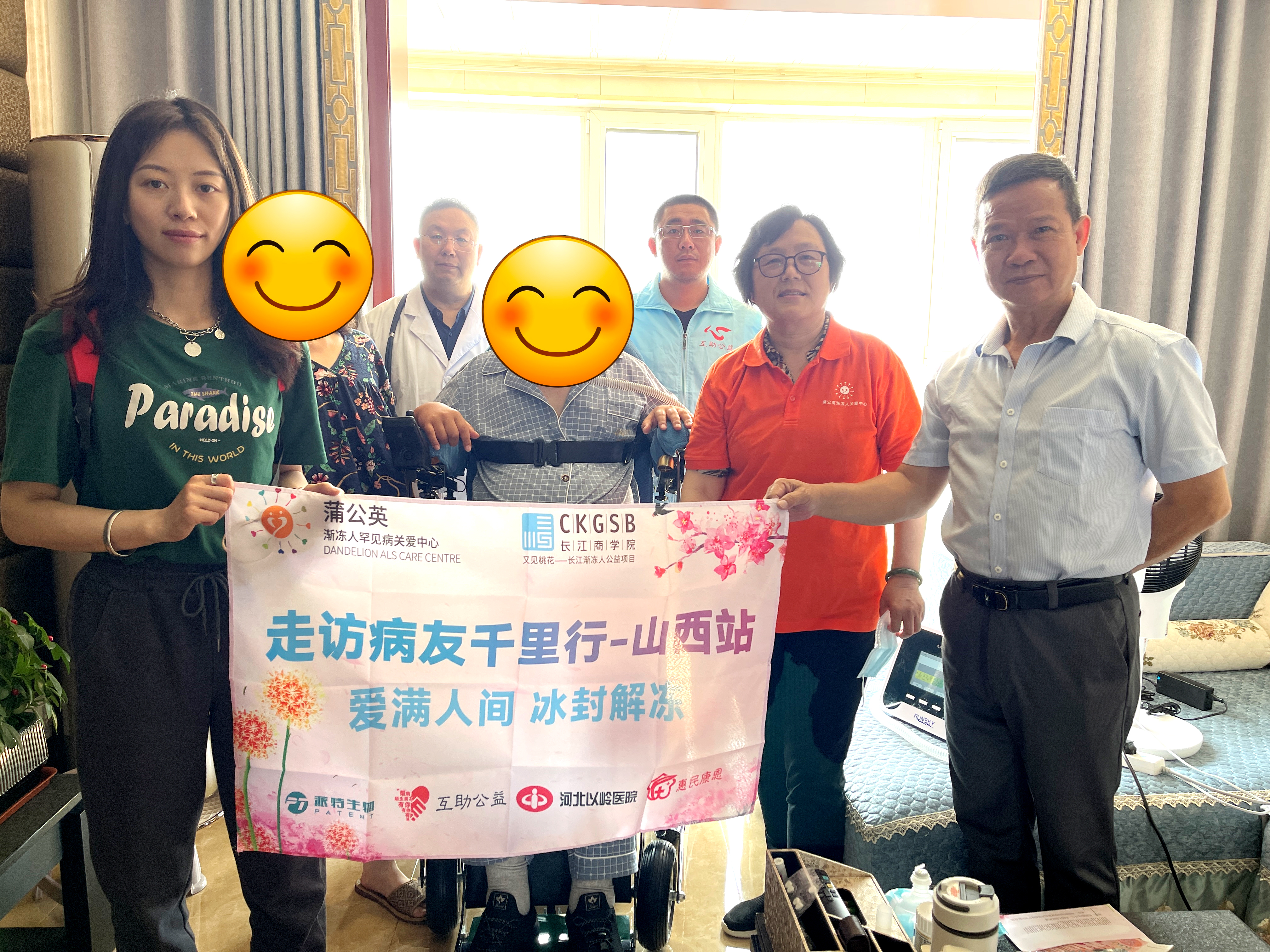 本次活動(dòng)中,派特生物集團(tuán)再次捐贈(zèng)善款和物資,以派特生物黨支部的名義與蒲公英組織及其它志愿組織和志愿者一道,從南到北跨越1800公里,為這些默默抗?fàn)幍募彝バ切侵?,希望以點(diǎn)滴匯聚的溫度,以力所能及的方式,提供人力物力上的支持,為山西地區(qū)的漸凍人朋友和家屬們,融化身體和生活帶來的堅(jiān)冰。