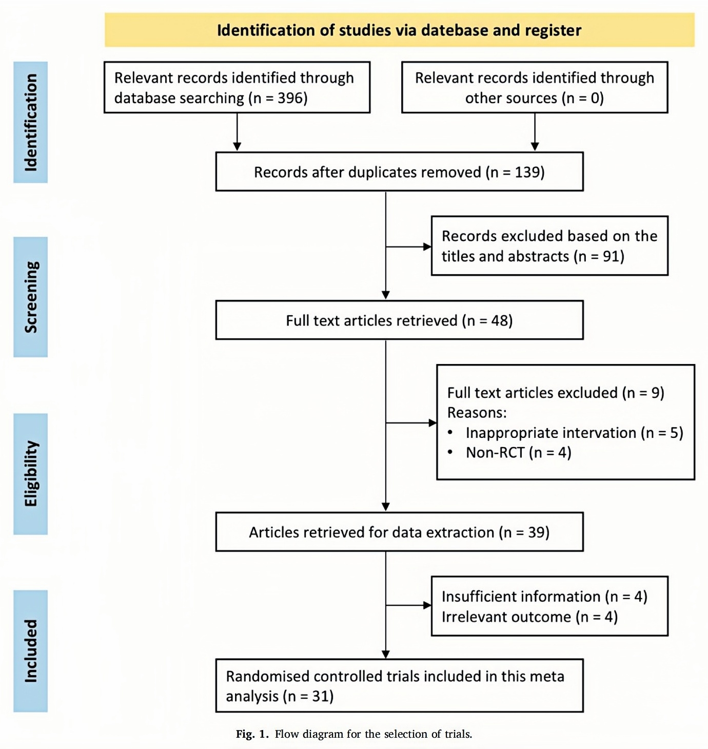 1) Reviews, case reports, animal studies and other non-RCT studies.