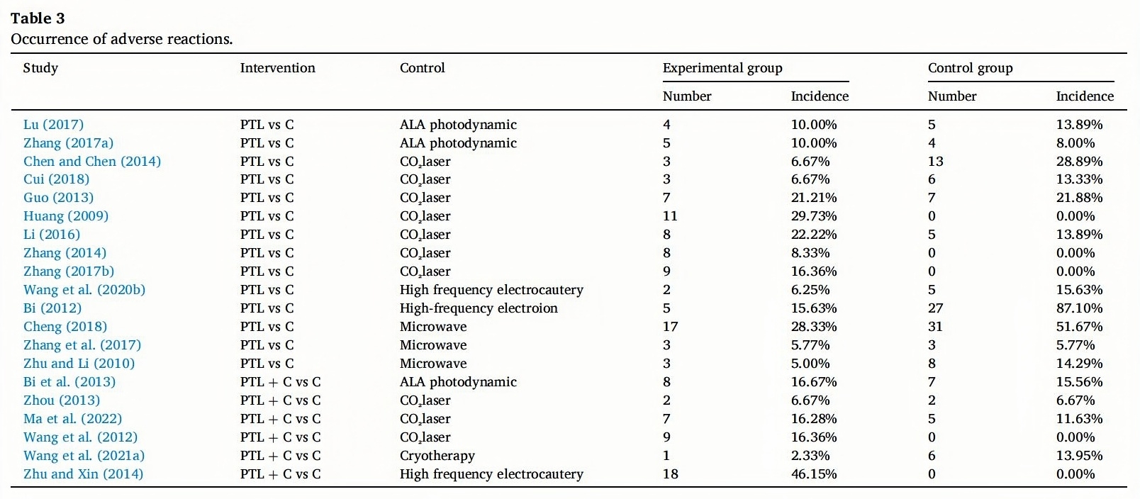 Zhang,J.,2017a.Clinical Observation of Patline and Ela-Photodynamic Treatment of Different Subtypes of HPV Infection with Condyloma Acuminatum. Ningxia Med University.